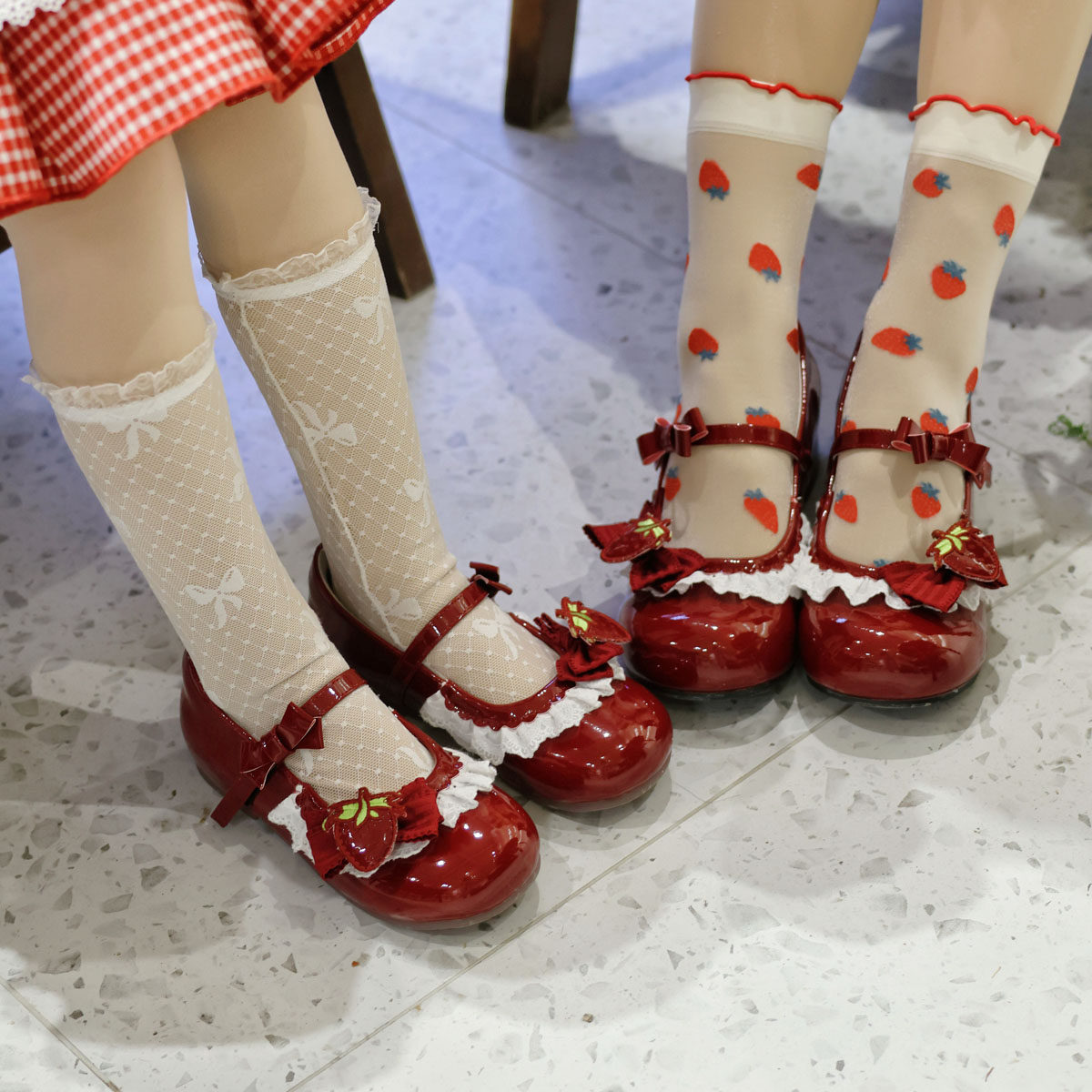 儿童版草莓匣子原创lolita单鞋小皮鞋女童可爱圆头蕾丝蝴蝶结亲子