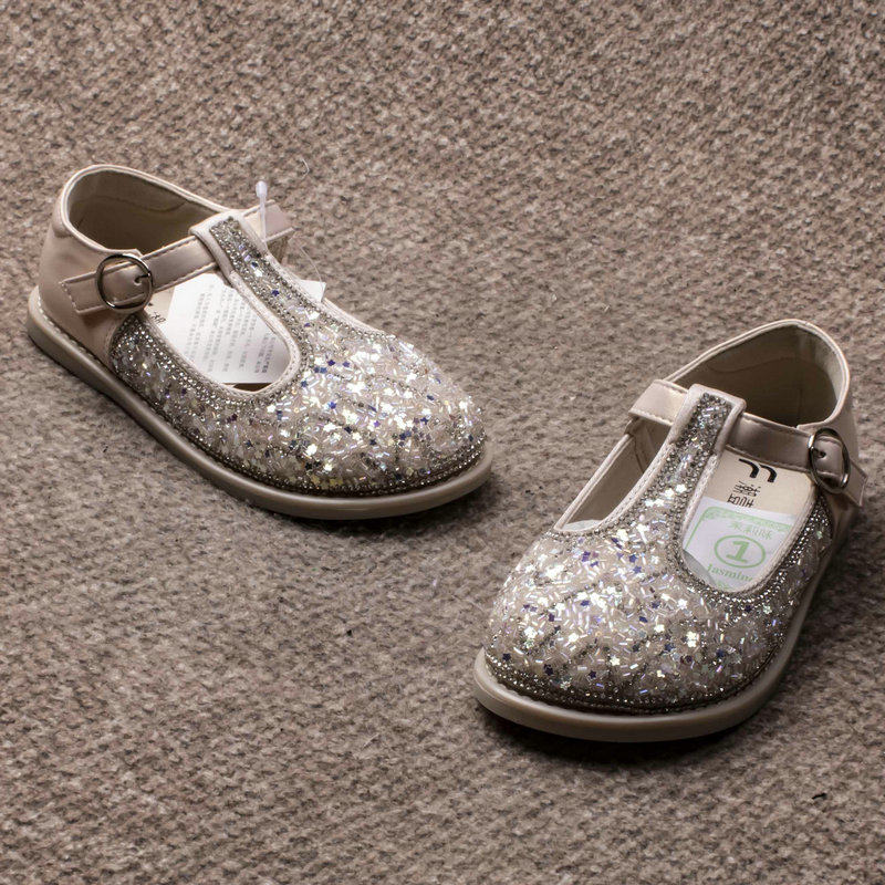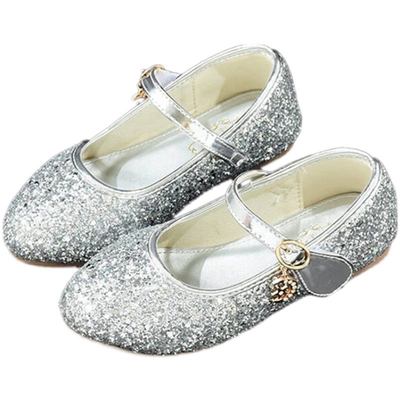 女童舞蹈鞋公主鞋儿童圆头亮片单鞋小女孩银白色演出鞋小学生春夏