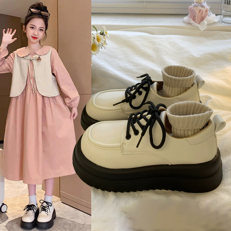 女童小皮鞋松糕厚底圆头皮鞋2025春秋新款白色英伦风复古大头单鞋
