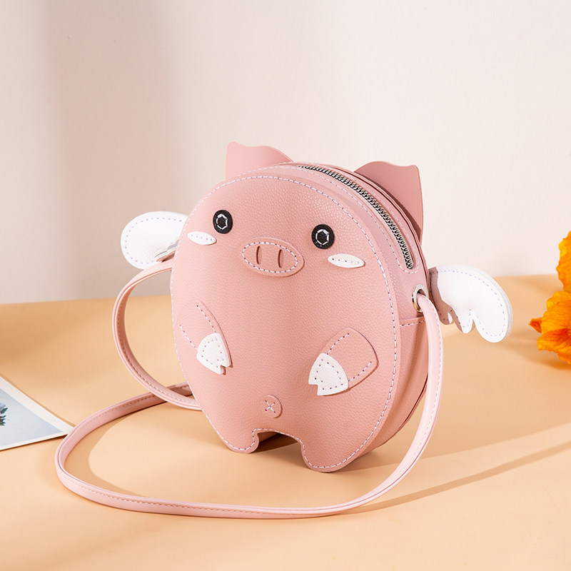 牛皮手工可爱卡通迷你小猪斜挎包女士学生创意休闲手机粉色小包包
