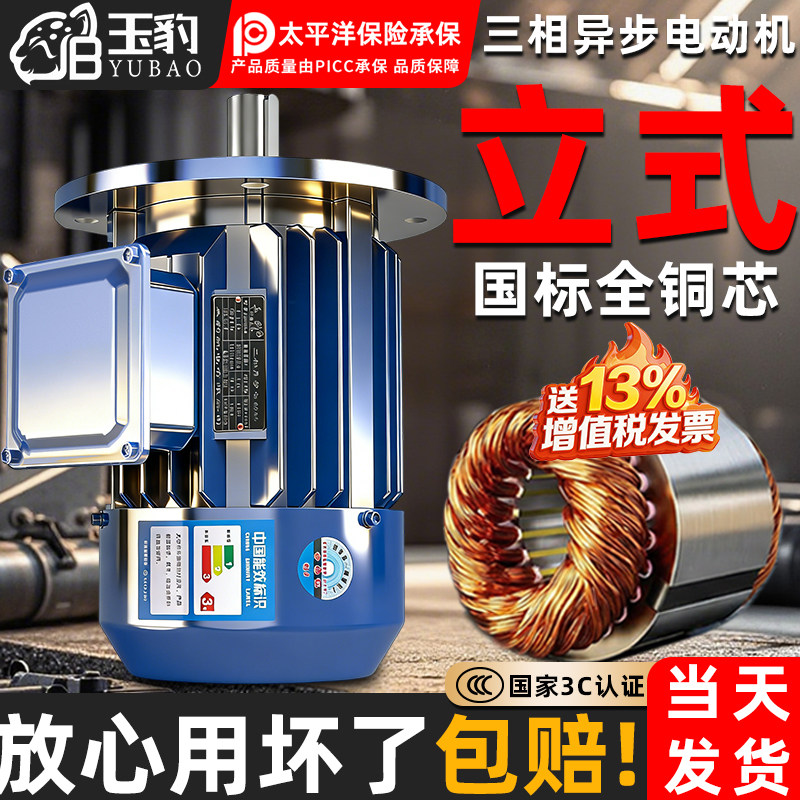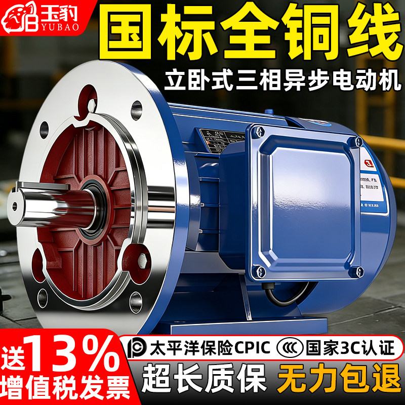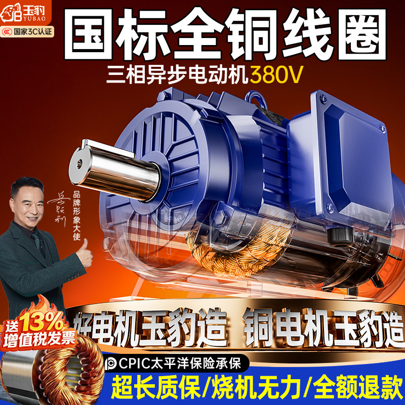 玉豹纯铜三相异步电动机安全稳定高效运行国标全铜芯电机380V三相