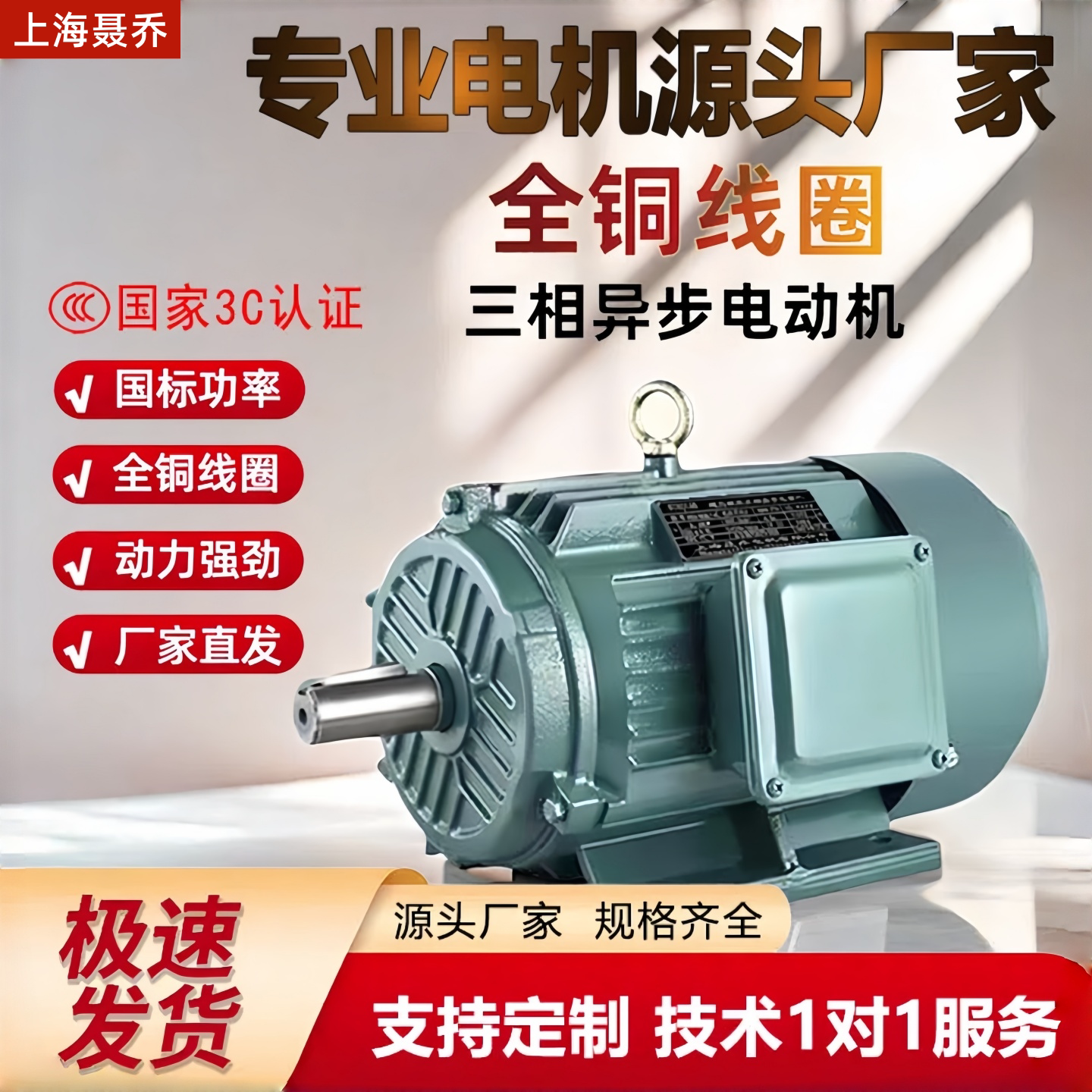 上海聂乔三相异步电动机380V全铜0.75/1.5/2.2/3/4/5.5/7.5KW电机