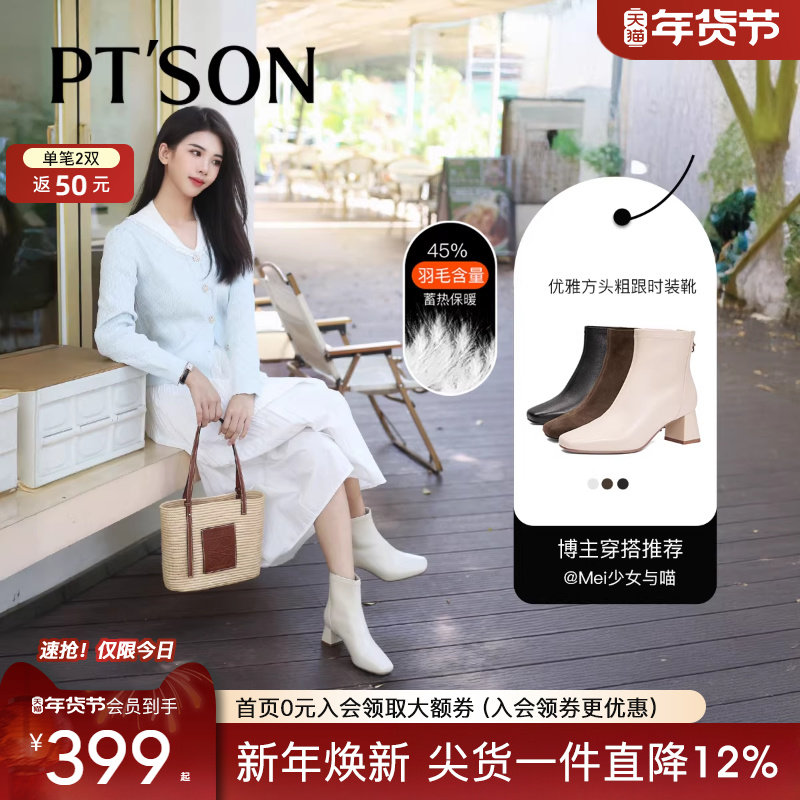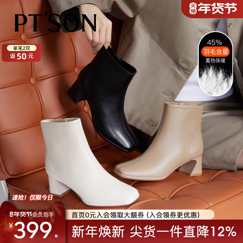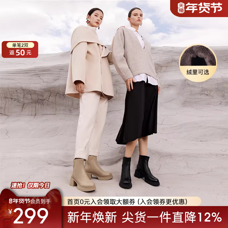- 粗跟短靴女冬
