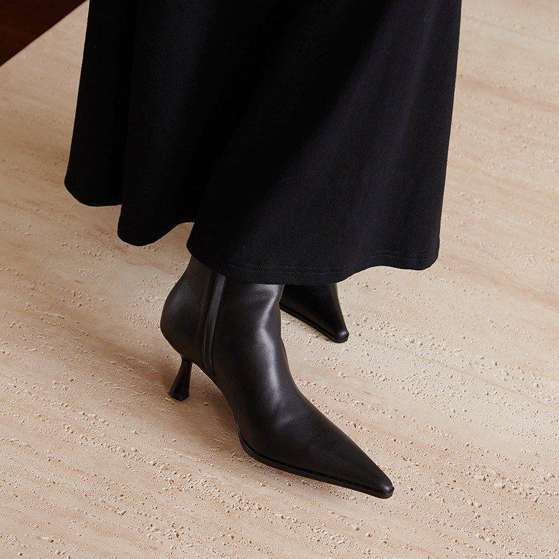 - 尖头真皮靴