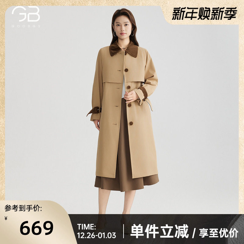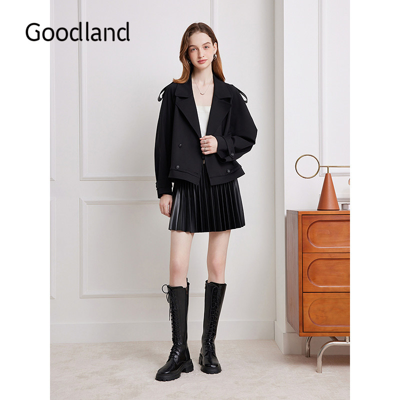 Goodland美地女装2025秋季新品拼接风衣外套短款LC35307020
