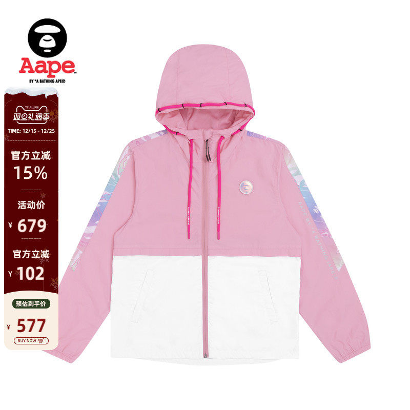 AAPE女装春秋猿人徽章字母印花幻彩迷彩拼接风衣7433XXG
