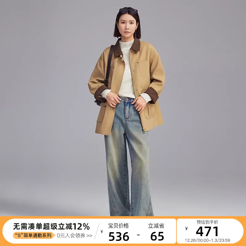 Jamor加墨时尚直筒拼接风衣式外套上衣显瘦中长款2025秋冬新款