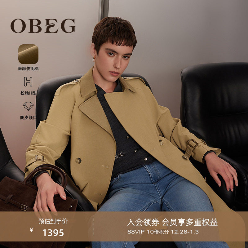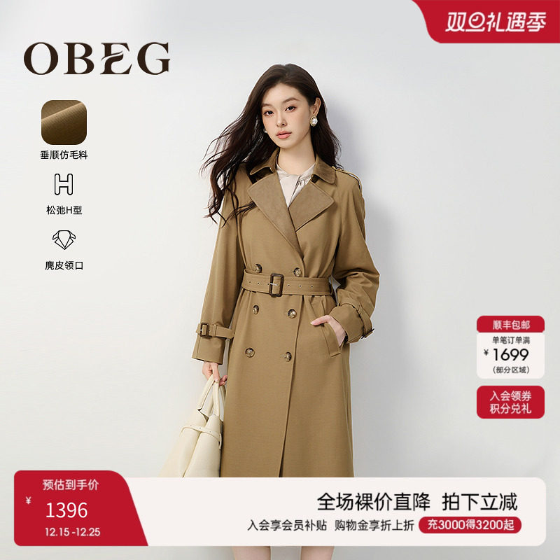 OBEG欧碧倩智性精英风仿麂皮拼接风衣外套女2025秋季新款50503508