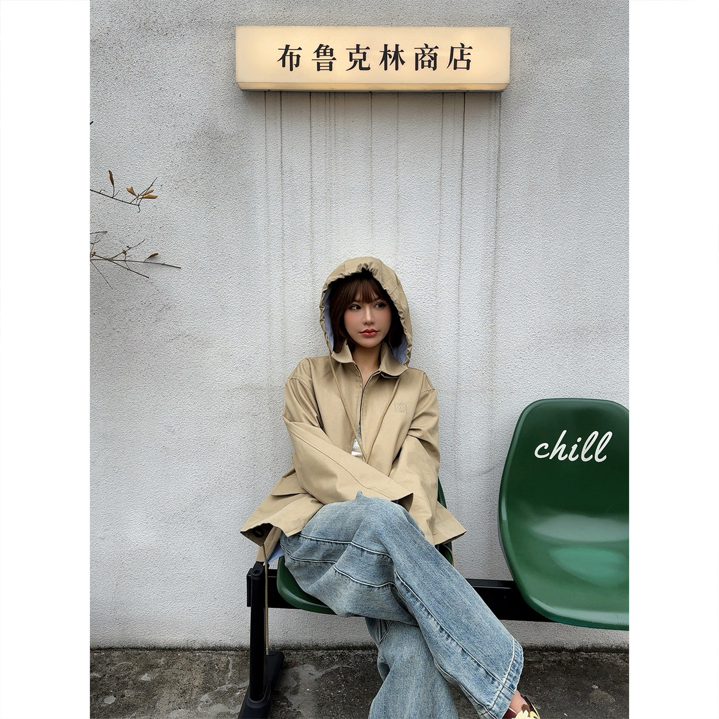 ASBR 原C!可拆卸领拼接风衣夹克外套25秋新款纯棉连帽拉链上衣女
