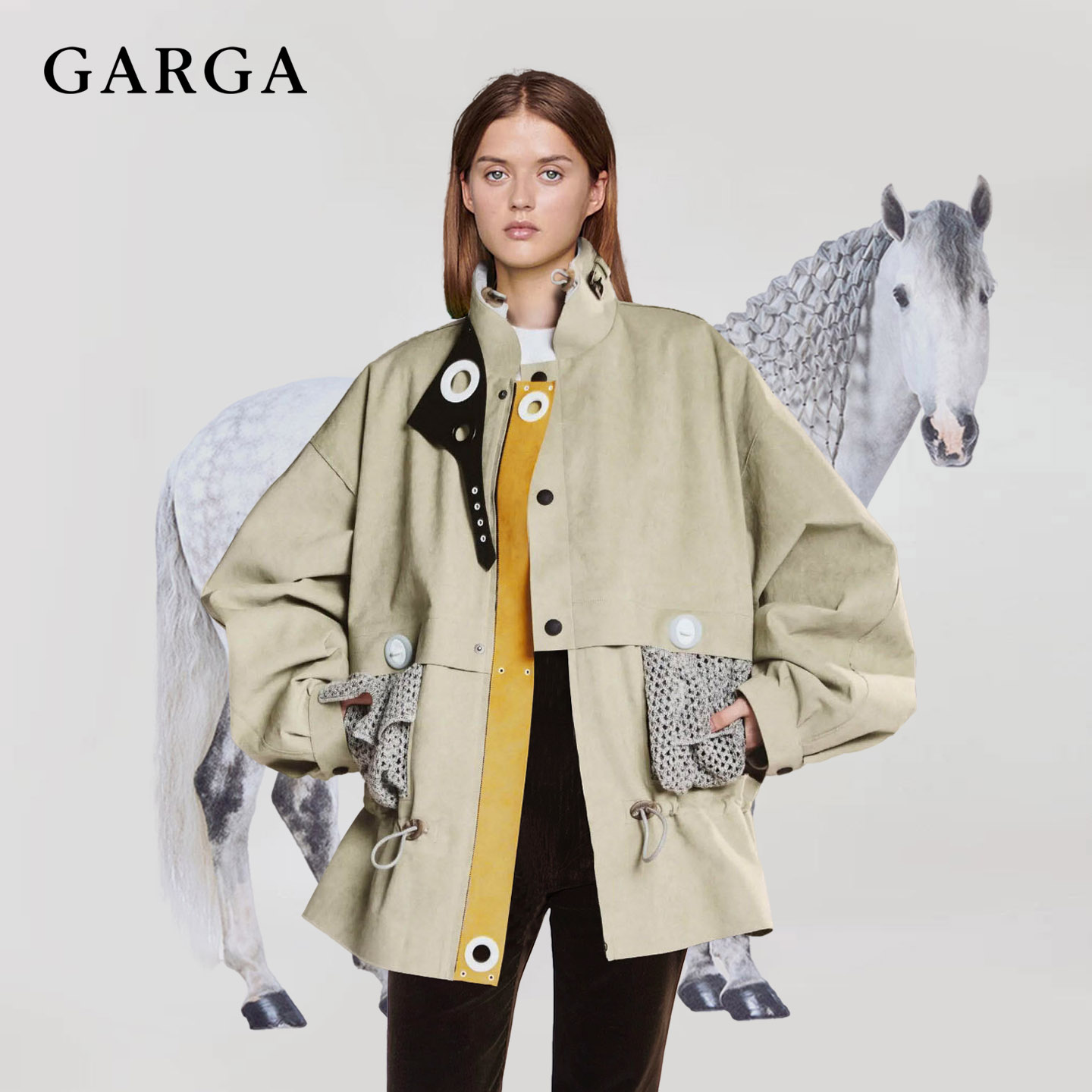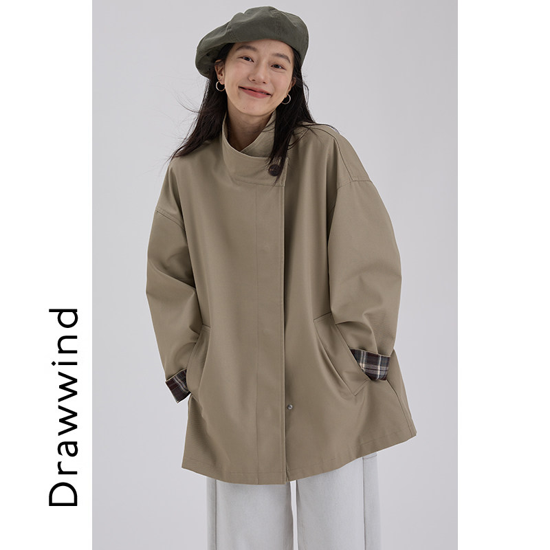 画风drawwind气质英伦风立领夹克外套女秋小个子廓形撞色拼接风衣