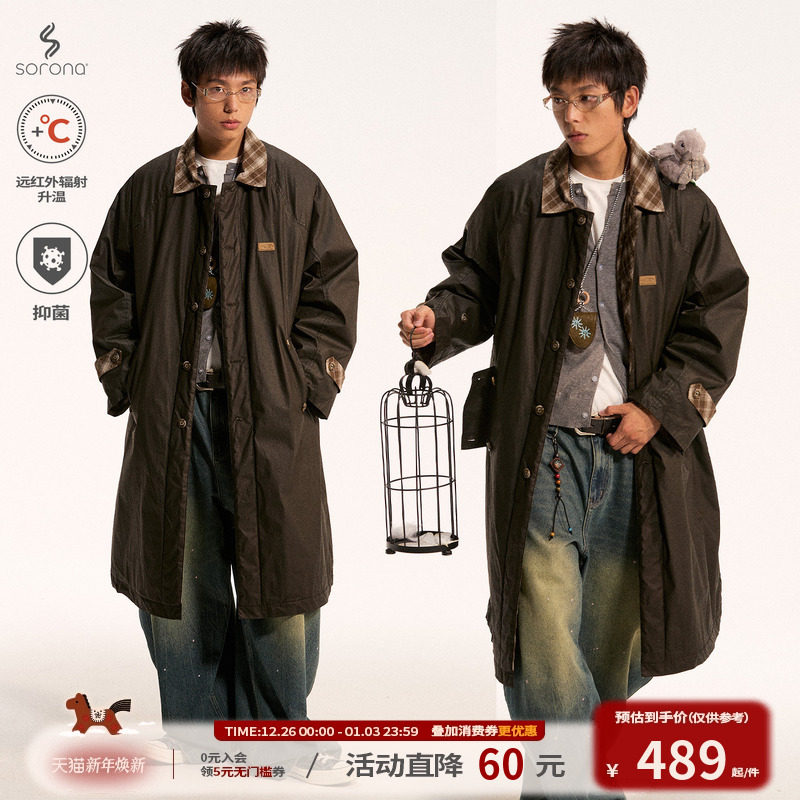 江南先生NewJNXS索罗娜抑菌复古格纹绗棉拼接风衣男女插肩袖外套