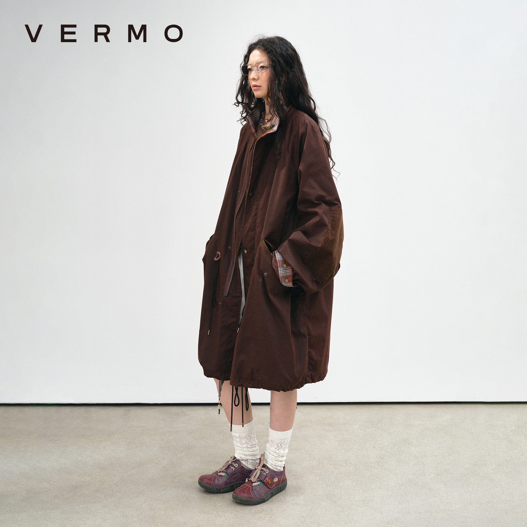 VERMO 记录使用痕迹 复古红咖摩卡 油蜡拼接工装派克风衣外套