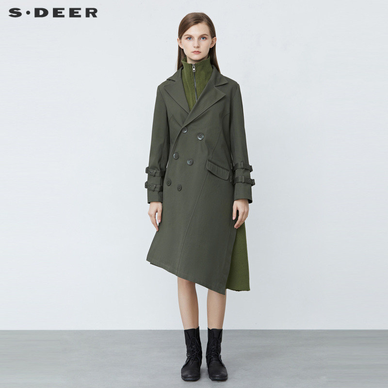sdeer圣迪奥冬装个性不规则针织假两件拼接风衣女S21481855
