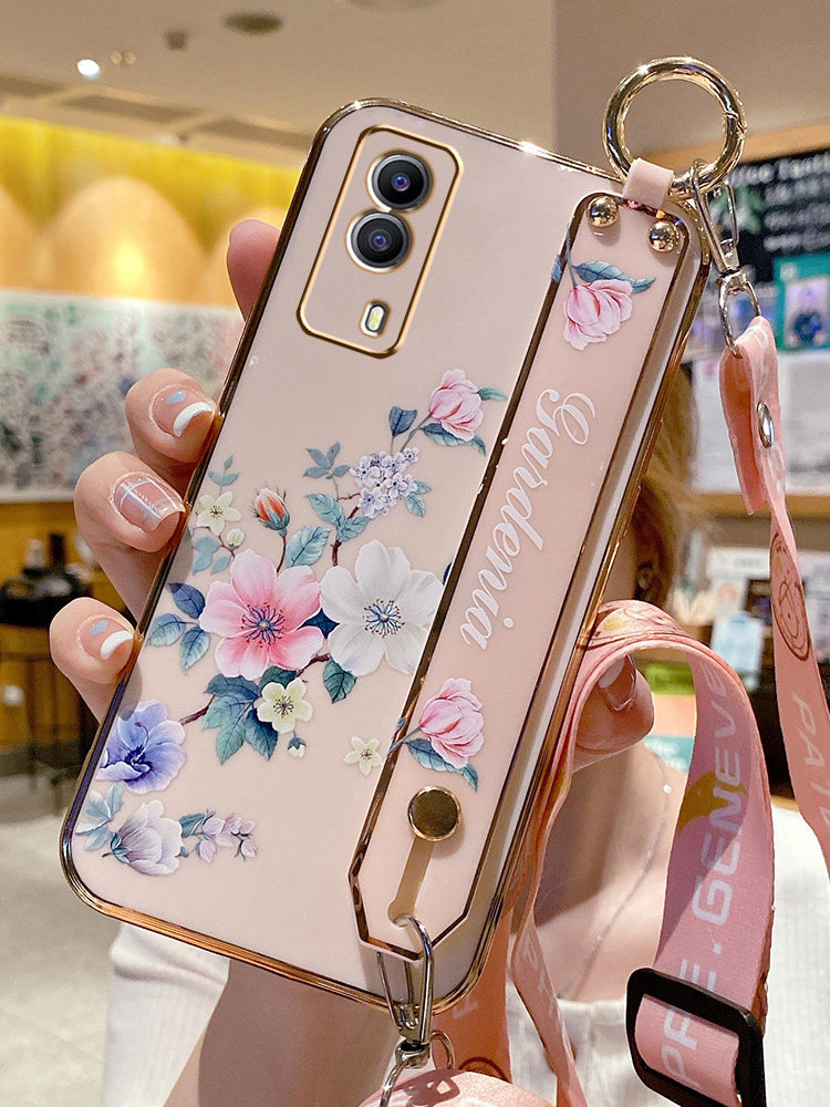 适用于vivoT1x手机壳vivo腕带T1x保护硅胶套5G高级感时尚夏日女V2123A花卉小清新vovi全包防摔t1x5g挂绳背带