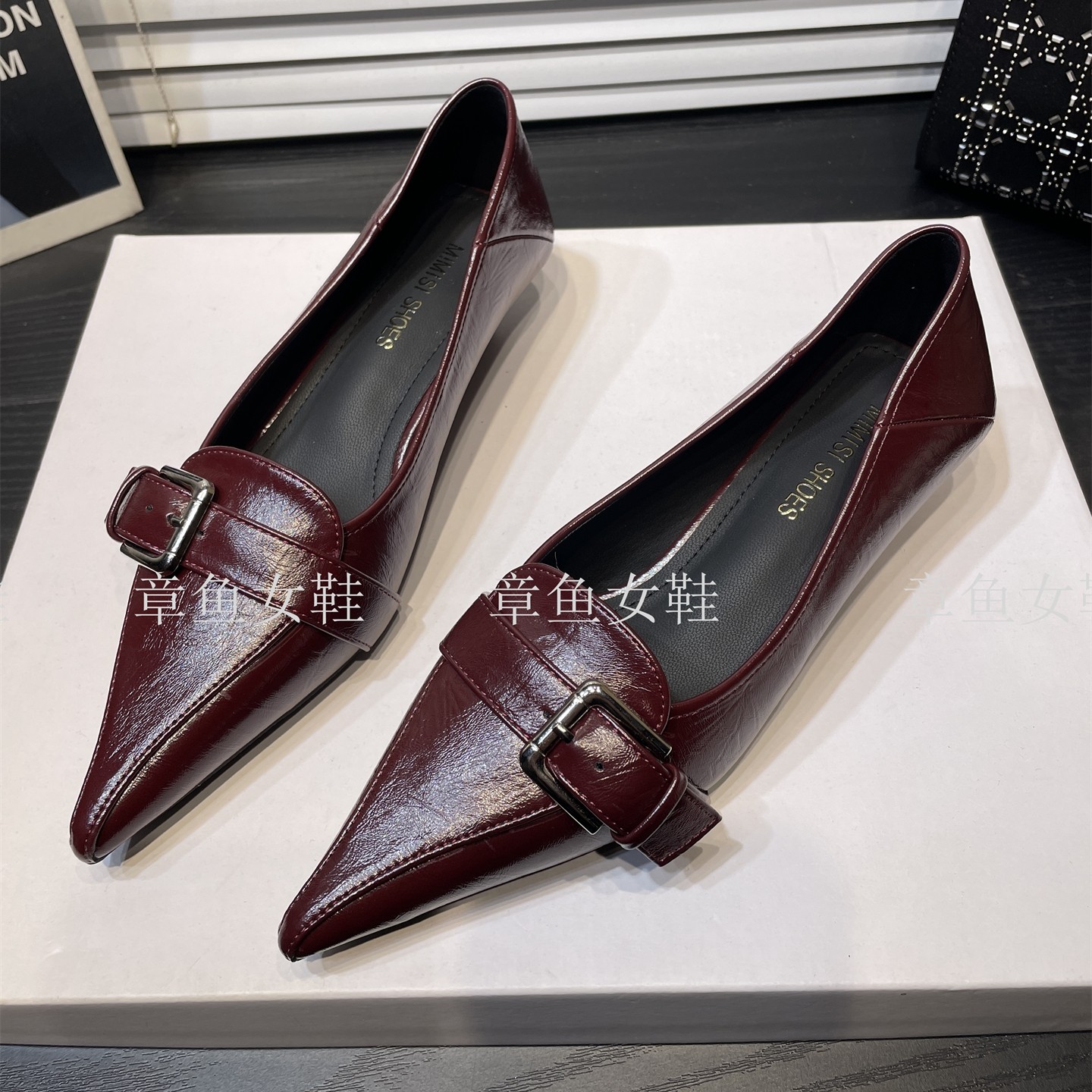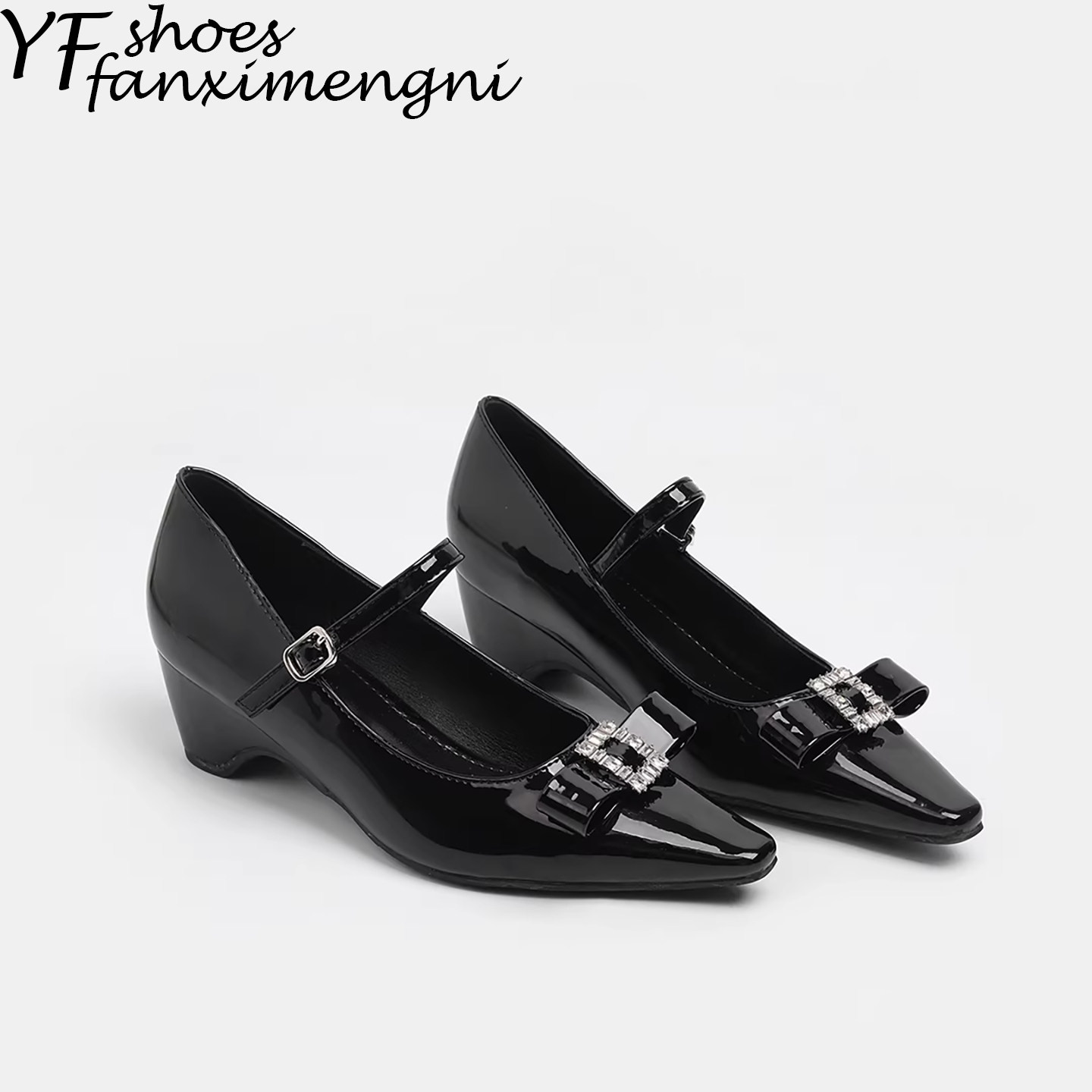 - 漆皮方扣单鞋