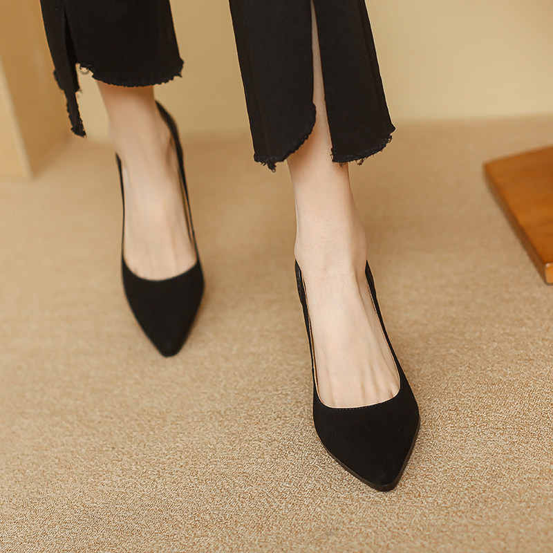 - 粗跟磨砂皮女单鞋