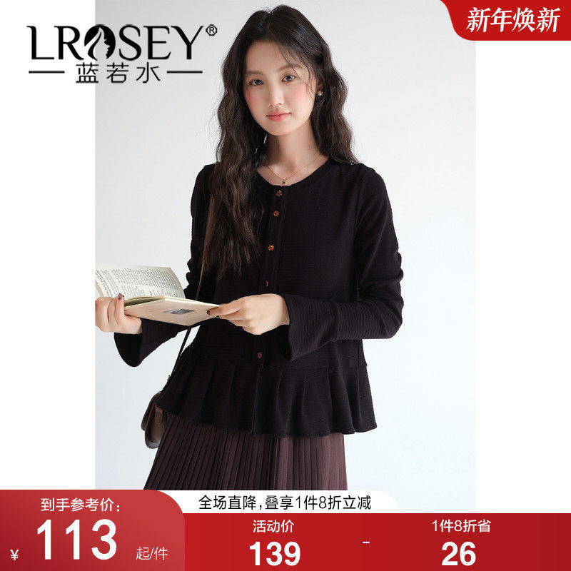 【法式荷叶边下摆针织开衫】蓝若水大码2026春装新款遮肉显瘦上衣