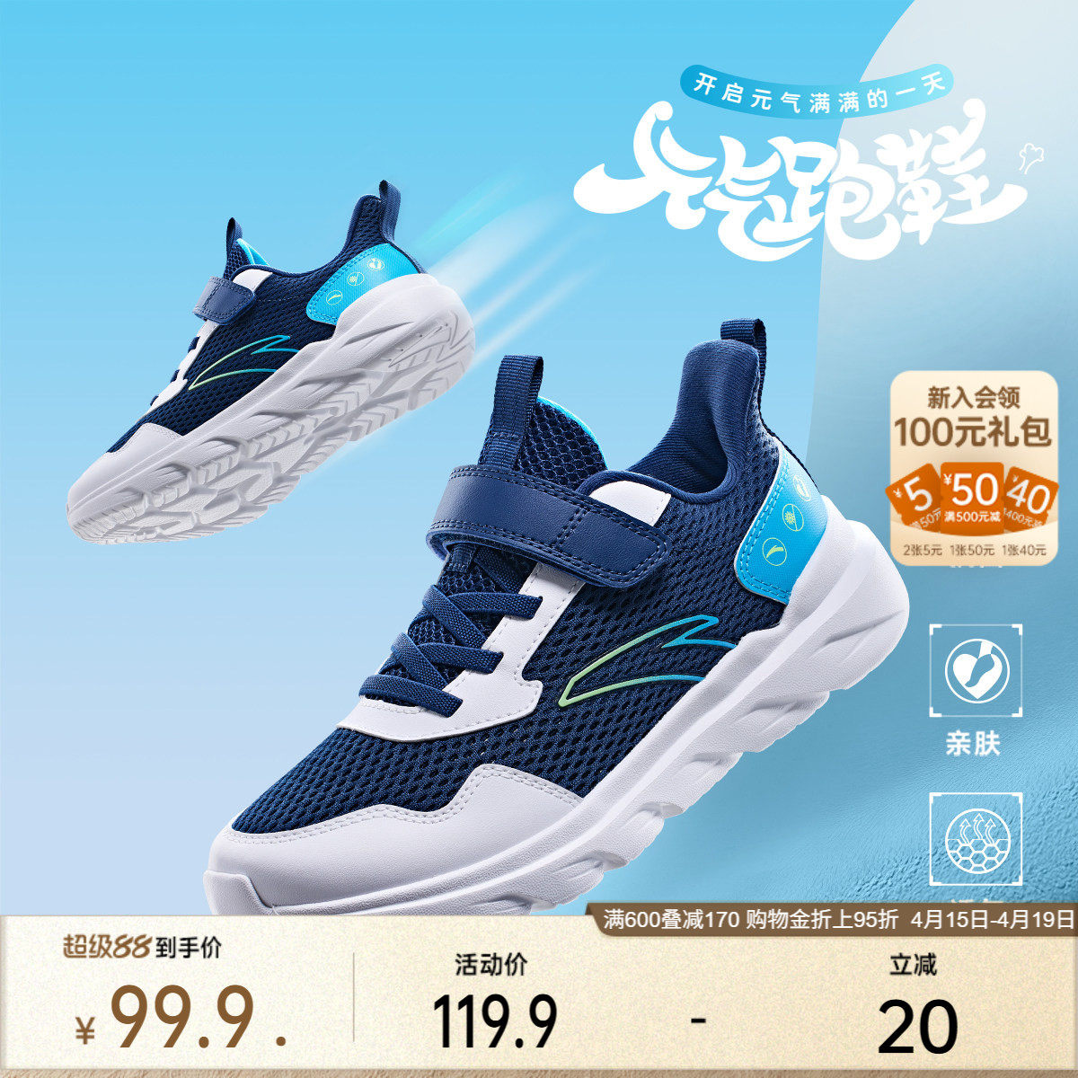 安踏儿童逐月男童跑鞋2026夏季网面运动鞋青少年学生轻便跑步鞋子