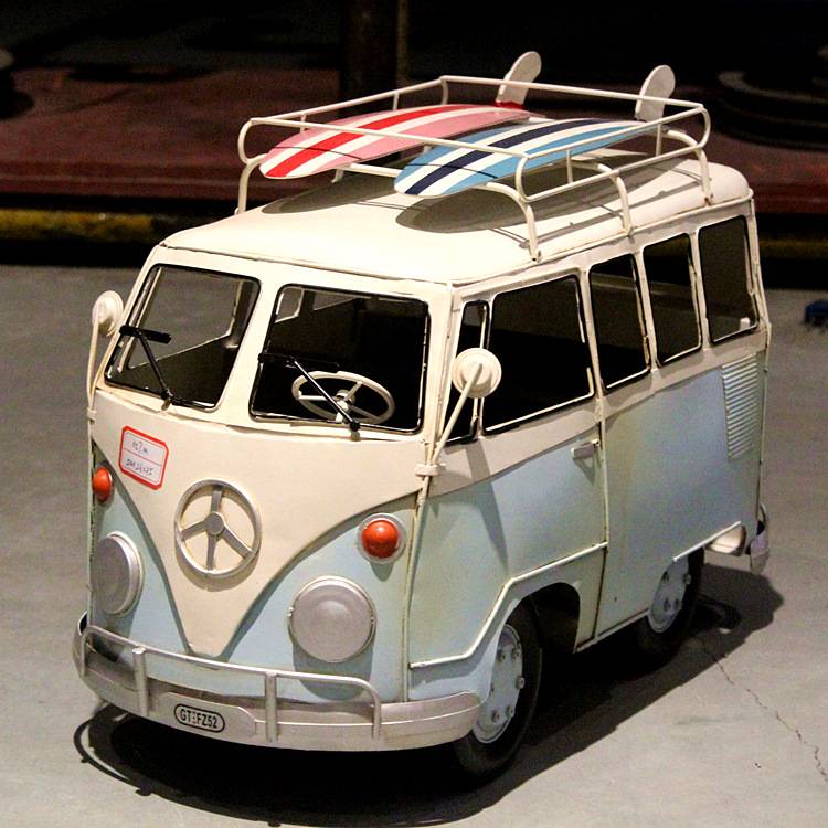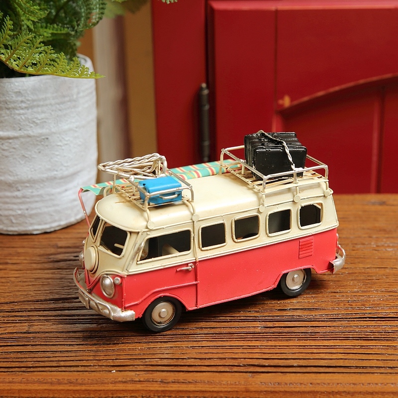 复古铁皮大众甲壳虫面包公交巴士汽车迷你房车模型仿真家居小摆件