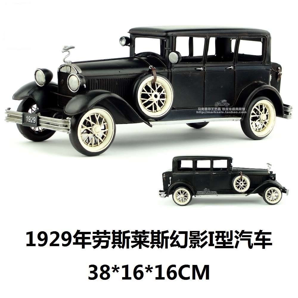 仿古铁艺汽车模型 1929年劳斯莱斯幻影I汽车 手工铁皮车摆件礼物