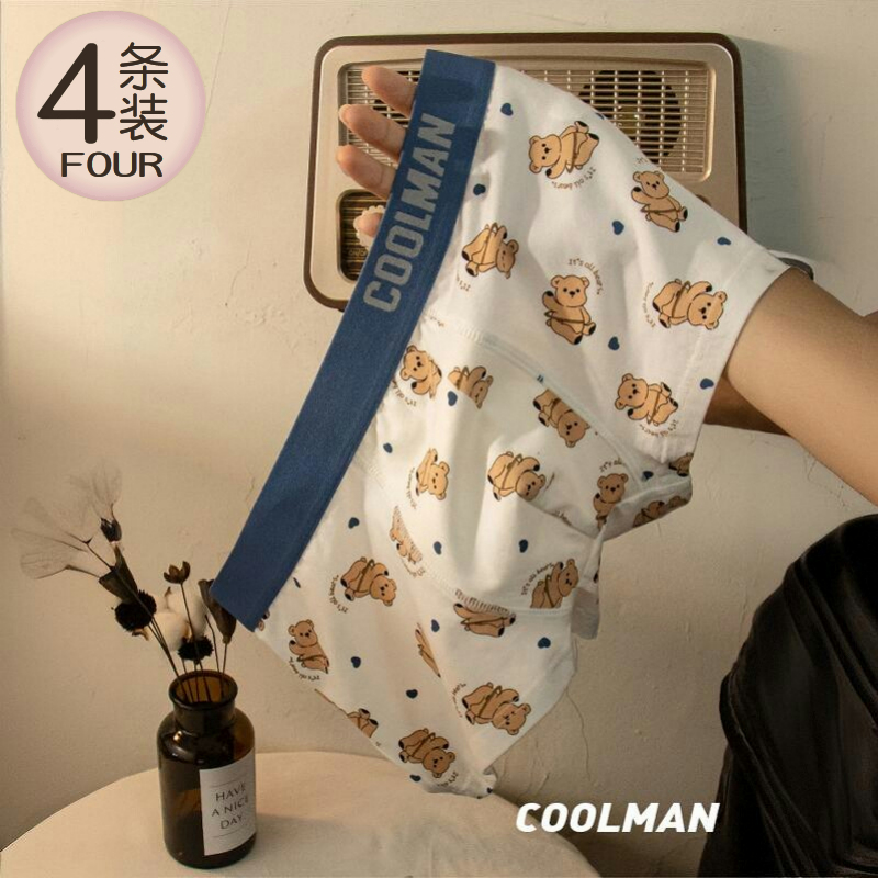 男生纯棉抗菌内裤男士卡通秋冬新款平角裤宽松大码透气四角短裤头
