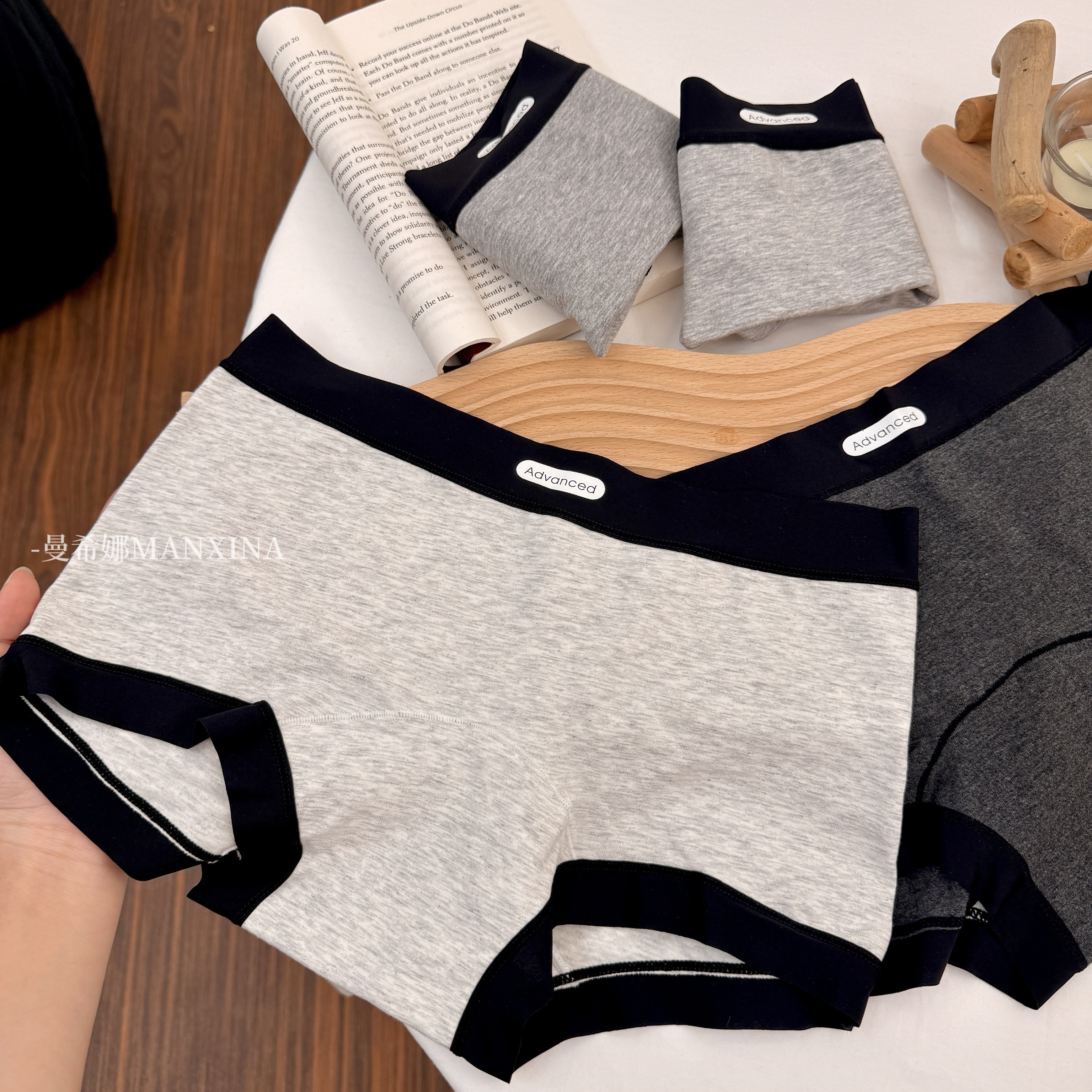格雷灰系纯棉抗菌内裤女士中高腰2025新款运动简约不夹臀平角内裤