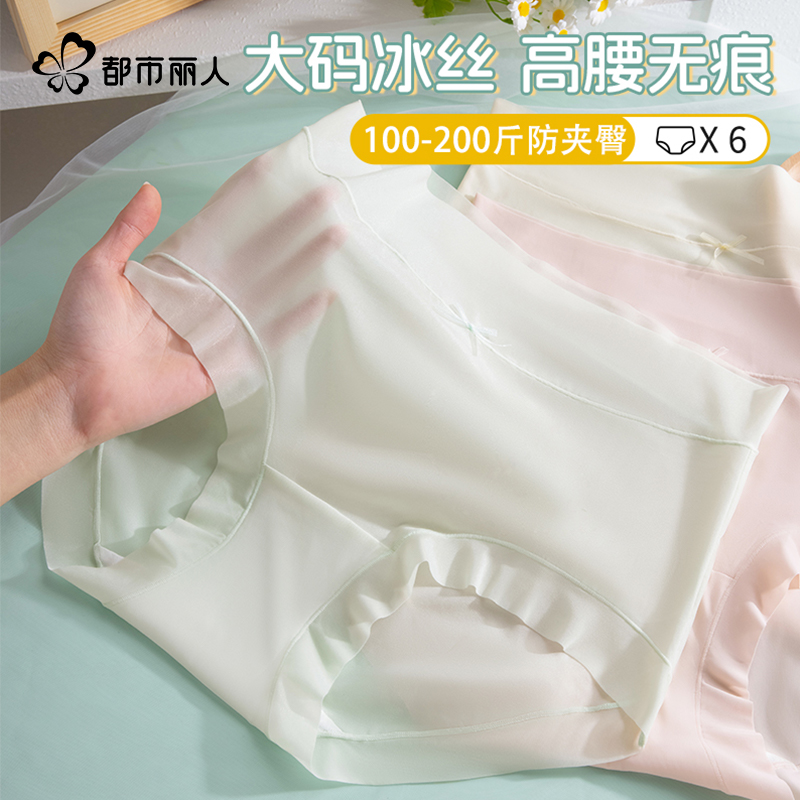 夏季新款超薄冰丝大码内裤女高腰200斤a类纯棉加长裆10A抗菌内裤