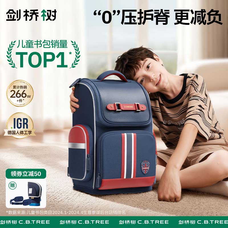 剑桥树儿童书包男小学生女孩护脊减负超轻一到六年级2025新款背包