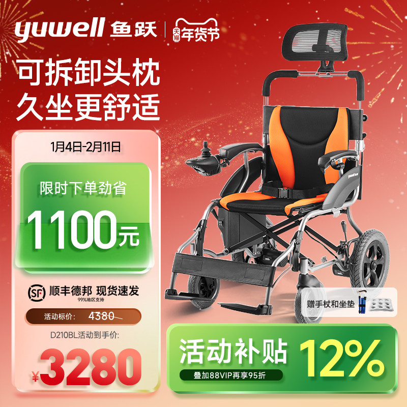鱼跃电动轮椅车折叠轻便老年人专用残疾人智能全自动代步车D210BL