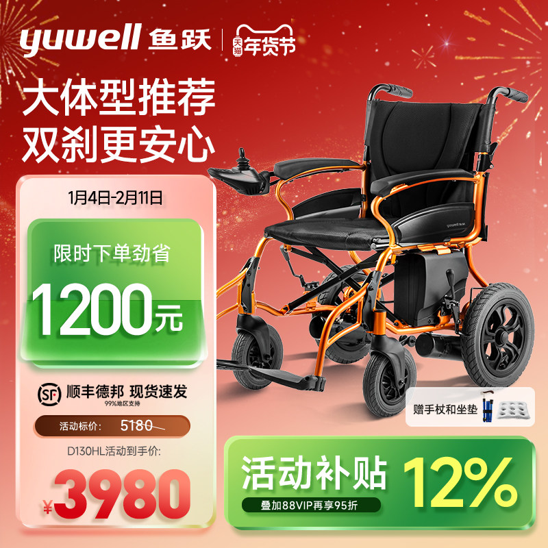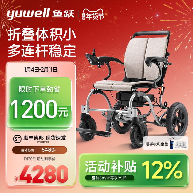 鱼跃电动轮椅车老人专用智能全自动便携折叠轻便年轻代步车D130FL