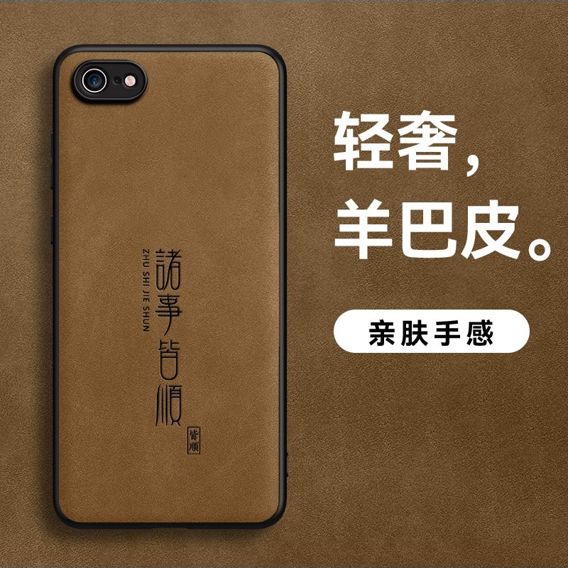适用苹果8手机壳8plus羊巴皮7HS诸事皆顺7plus外壳SE2高档SE3简约iphone肤感软边男款防摔防汗磨砂超薄皮面新