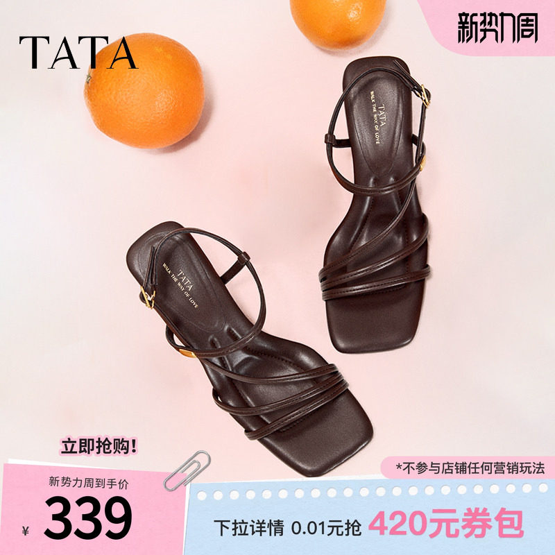 TATA他她高跟鞋一字带凉鞋女鞋法式复古绑带凉鞋夏季新款7UJB9BL5