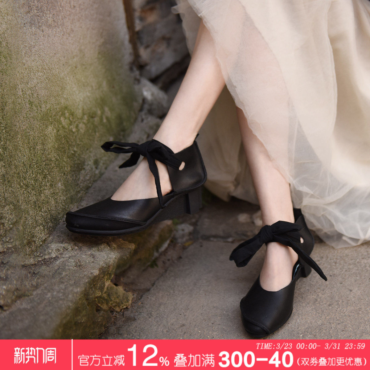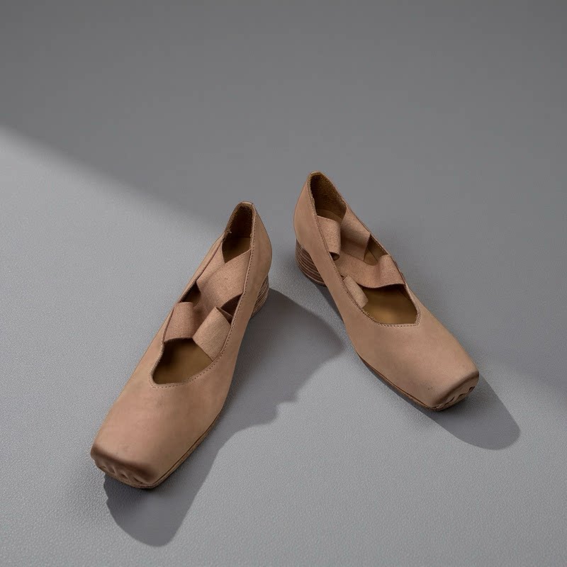 方头高跟芭蕾舞UMA LOONGWIN法式复古小众手工交叉绑带玛丽珍单鞋