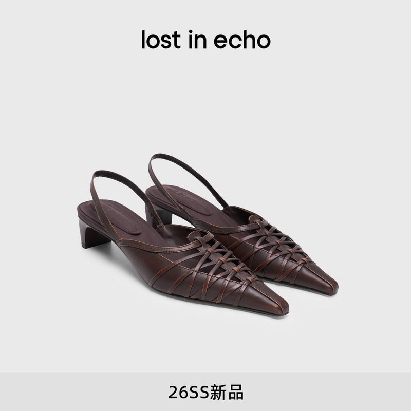 lost in echo2026春夏新款时髦摩登风尖头芭蕾绑带小猫跟高跟鞋女