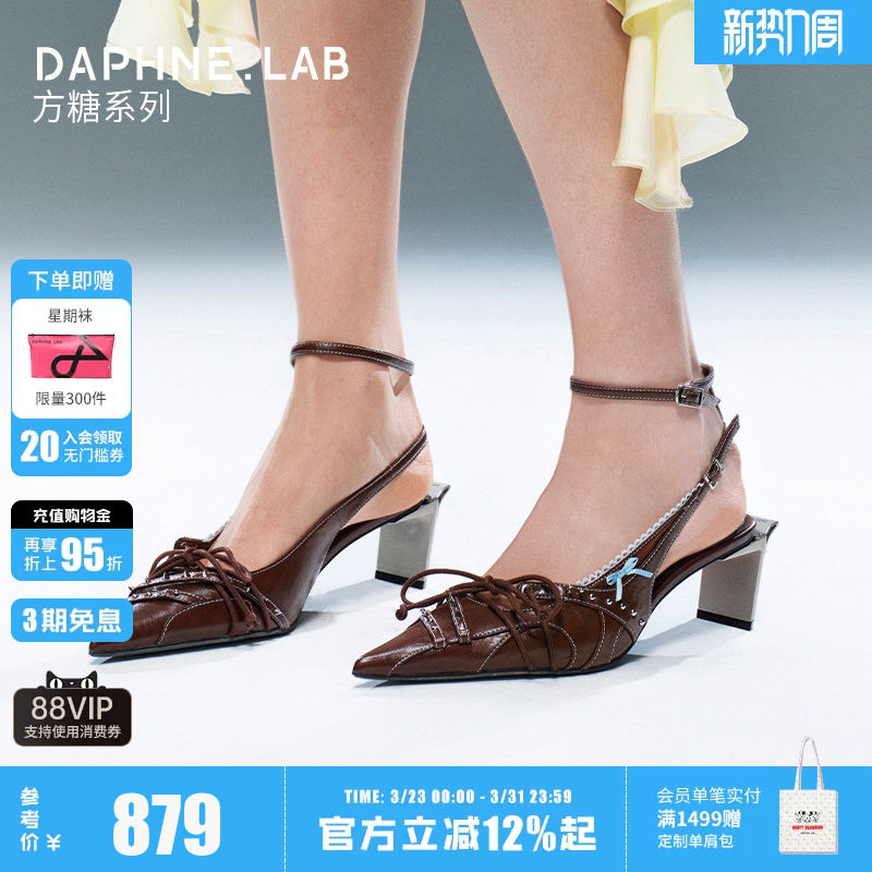 DAPHNELAB方糖脚踝绑带后空鞋26春穆勒鞋高跟鞋尖头鞋凉鞋女