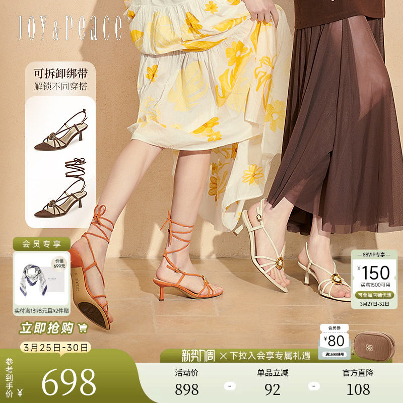 法式复古中古凉鞋女2026夏季新款气质细跟设计感露趾后绑带高跟鞋