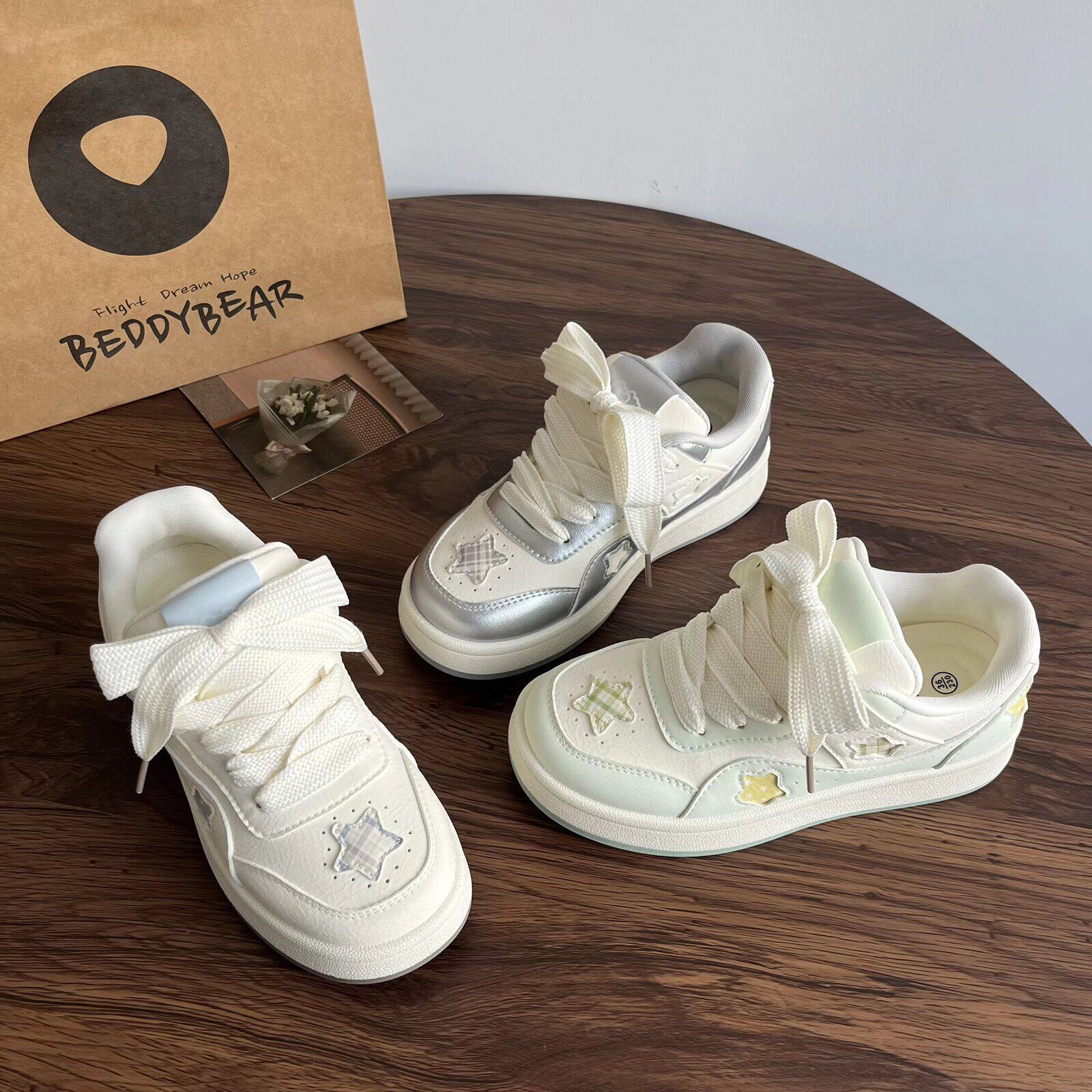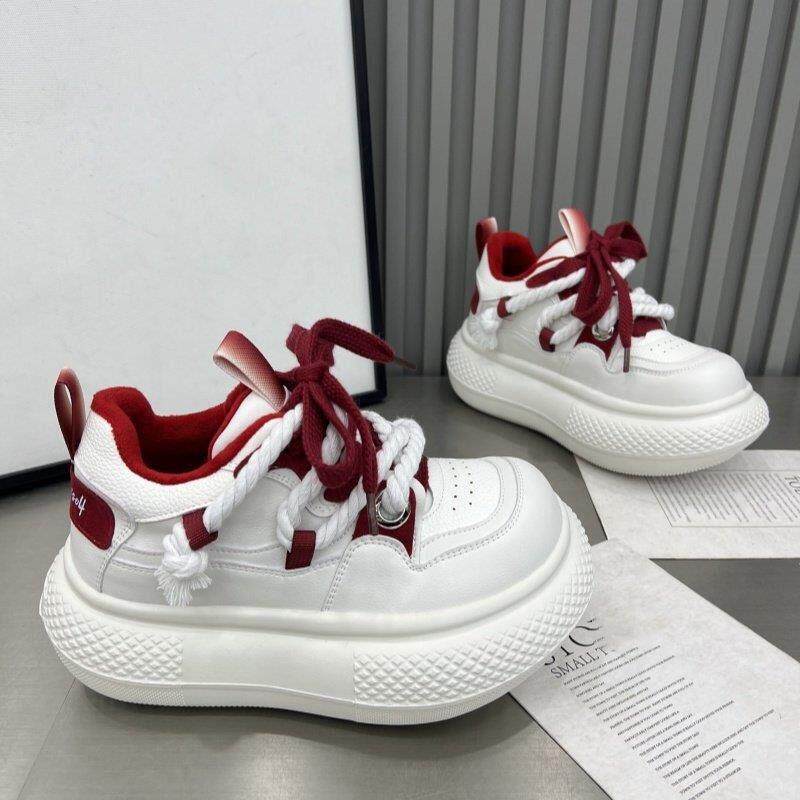 【万达撤柜】大头鞋面包松糕皮面小白鞋女2026春季厚底增高系带运
