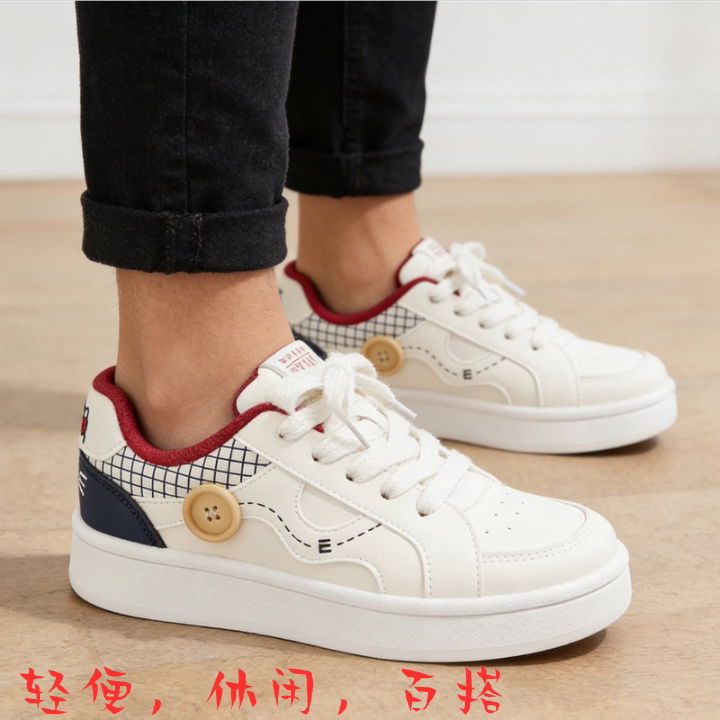 2026新品系带小白鞋女校园风格流行板鞋抗菌易清理白色皮面鞋子