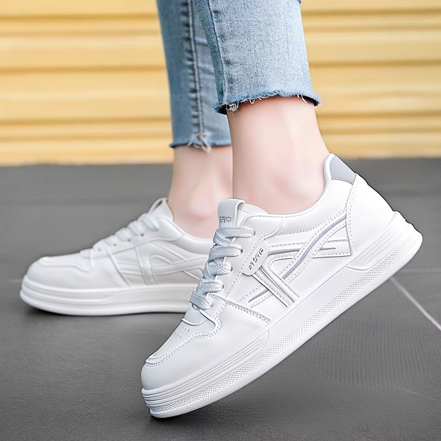 2025新款春秋季透气平底浅口板鞋皮面系带运动时尚休闲小白鞋女