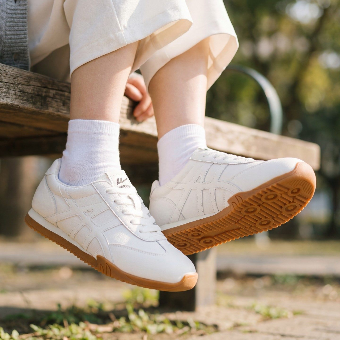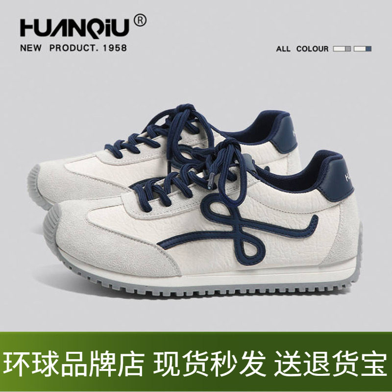 环球德训鞋女鞋轻便软底复古系带小白鞋运动鞋休闲皮面时尚阿甘鞋