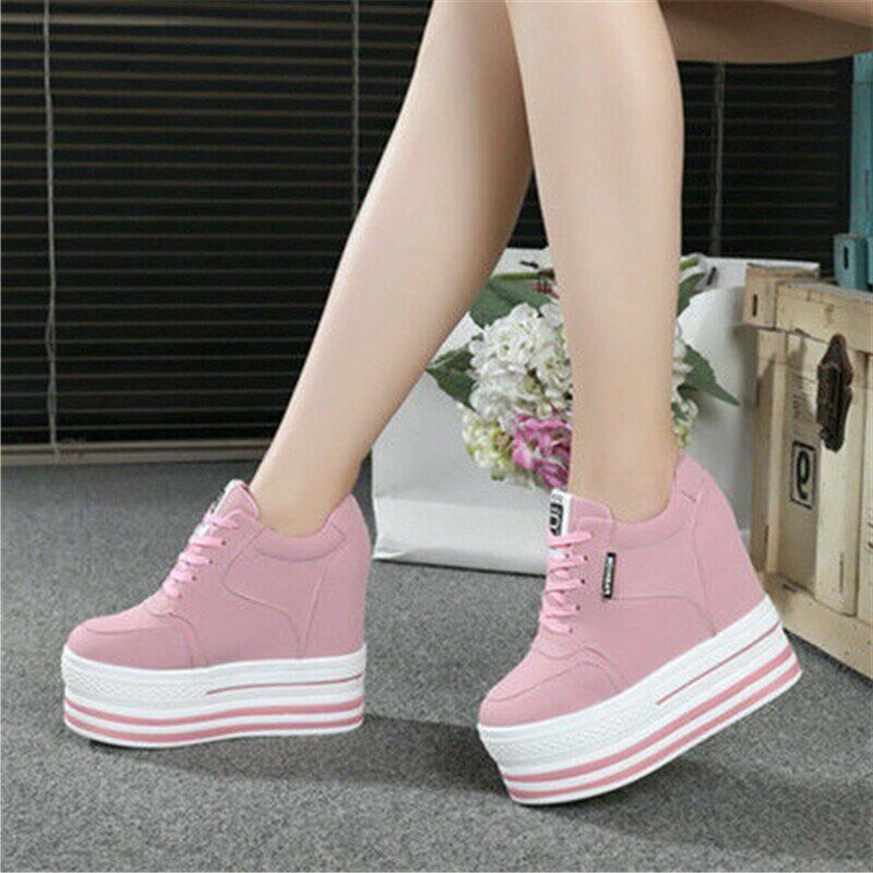 新品内增高12cm小白鞋女厚底系带坡跟春K秋运动鞋女韩版潮皮面松