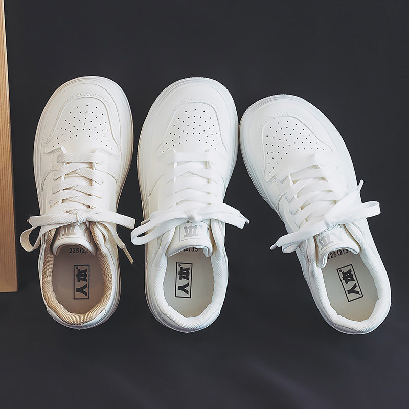 35-40码新款春秋系带小白鞋耐磨女平底皮面帆软底白色板鞋休闲鞋