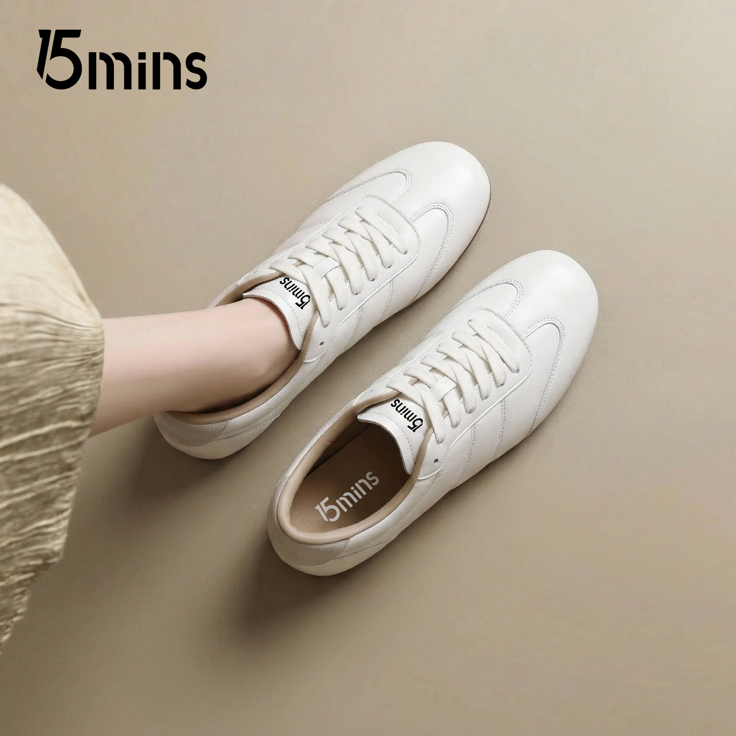 15mins芭蕾德训鞋女2026春季新款休闲运动皮面小白鞋百搭系带板鞋