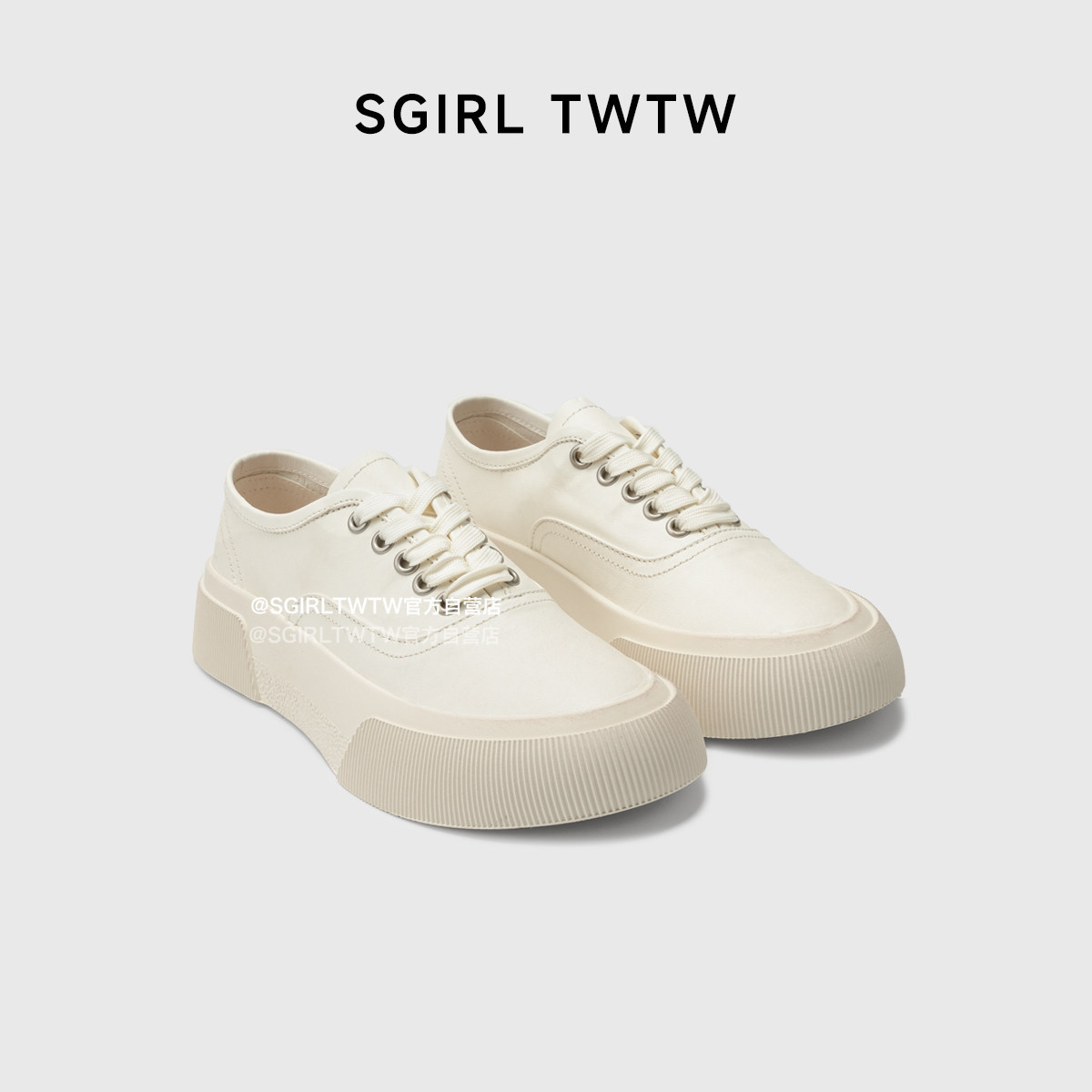 SGIRL TWTW官方原创系带板鞋女2025皮面圆头平底百搭休闲小白鞋潮