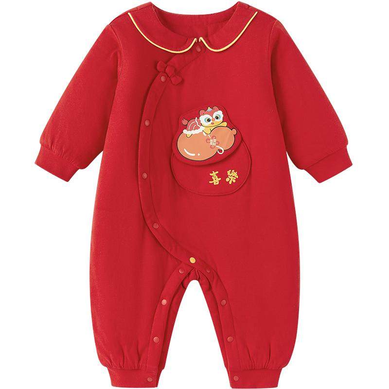巴拉巴拉童装新生婴儿连体衣哈衣2025新款年服宝宝衣服喜庆中国红