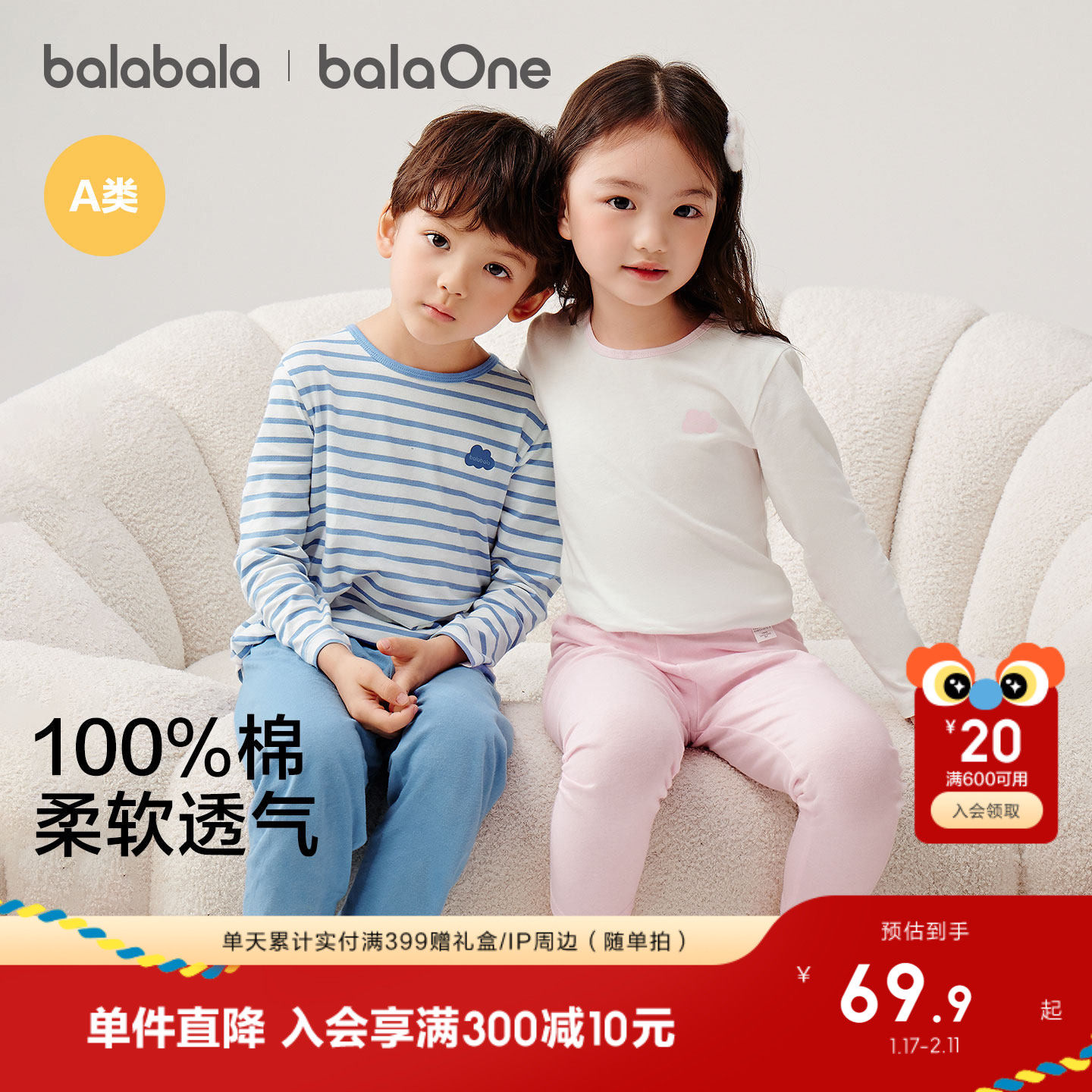 巴拉巴拉儿童内衣套装春秋薄男童秋衣秋裤女童宝宝打底衫睡衣纯棉