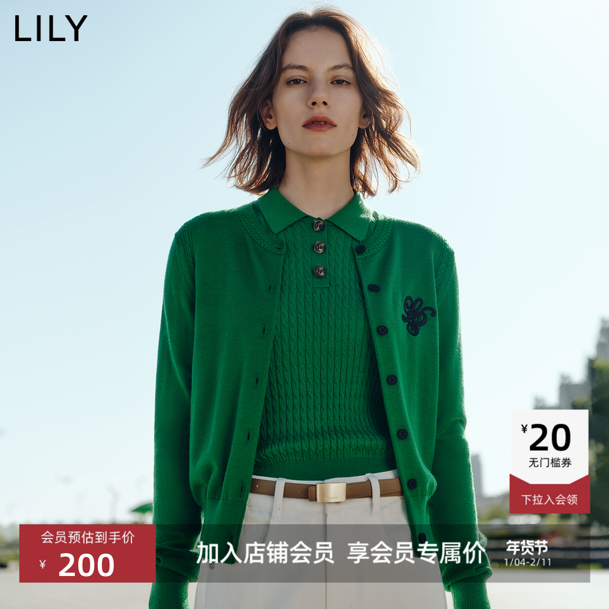 【商场同款】LILY2025新款女装复古假两件POLO领休闲短袖针织衫