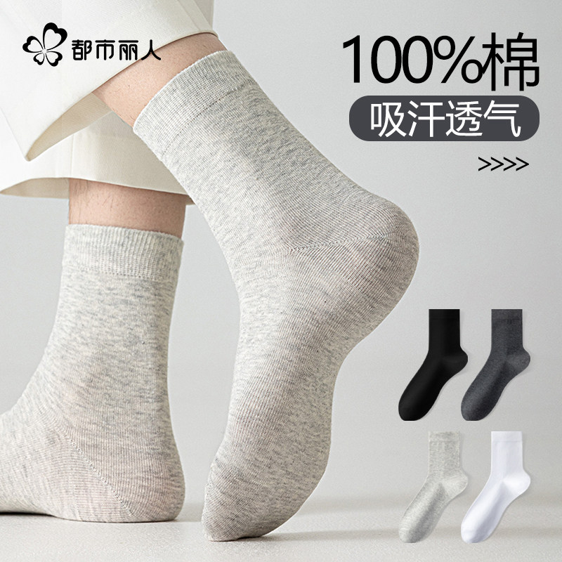 都市丽人袜子男纯棉吸汗透气青少年运动纯色百搭新款无骨中筒男袜