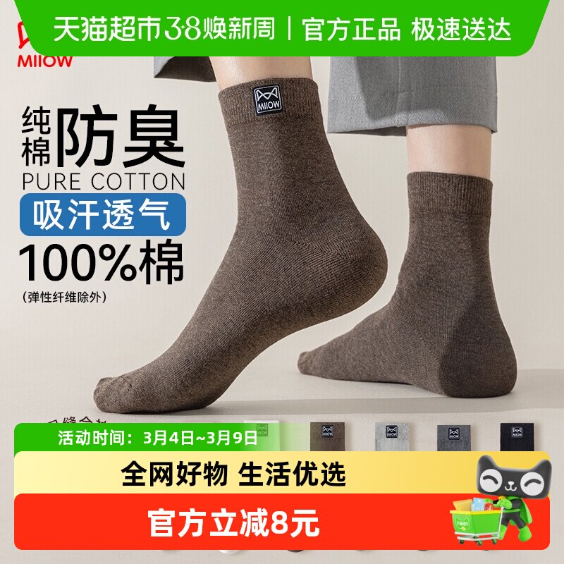 猫人男袜子纯棉中筒袜吸汗透气春秋夏季2026新款男士黑色商务袜子