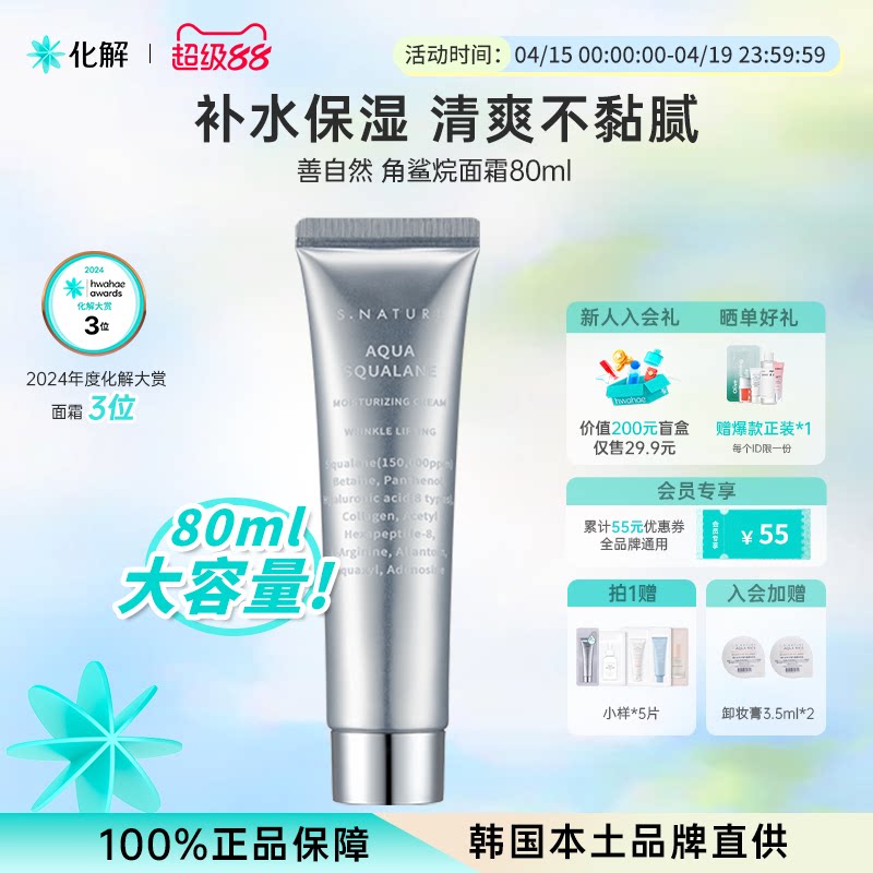 韩国化解丨S.NATURE善自然水库角鲨烷补水面霜妆前oliveyoung推荐